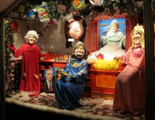 The infamous Barneys NY holiday display windows are up and carrying the theme "Have a FOODIE Holiday!". Every year the Barneys New York holiday windows are much anticipated and always follow some theme. Simon Doonan out did himself with embracing the pop culture of celebrity chefs. Simon even admitted that "As a fashion person, I'm not particularly well-versed in Food. But tonight fashion and food are coming together!" From Mario Batali to Paula Deen all were present for the big revealing to see how they were displayed in the window. And really, only Simon would be able to pull off a window display filled with snuggies?